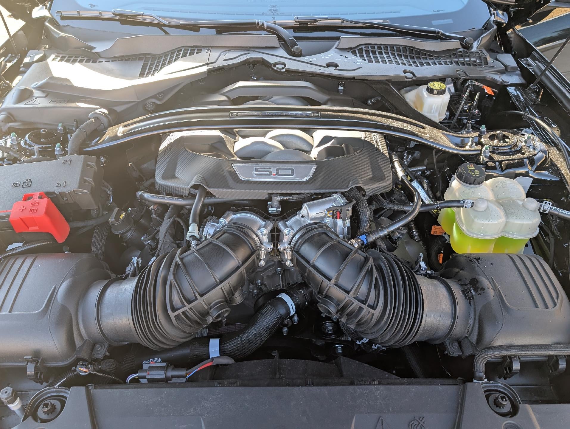 - DARK HORSE APPEARANCE PACKAGE -inc: additional blue seat accents, California special badge on strut tower brace and performance package front splitter, Notorious Blue Painted Brake Calipers, grabber blue logo, Painted Black Roof, Unique Hood Graphic (54C)